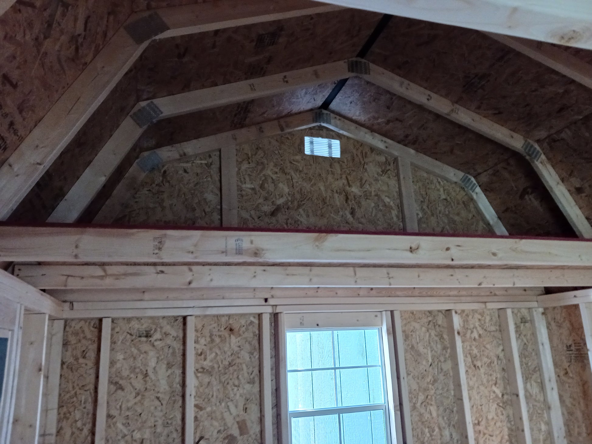 This one is a 10x12 Lofted Barn with 6'3" walls, 2x3 windows, double doors and painted trim.